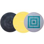 Get ready for roundabout quilting with our Round-About 3-Piece set! The set includes a Round-About base that rotates on 24 ball bearings, a 17” diameter cutting mat, and an iron top.